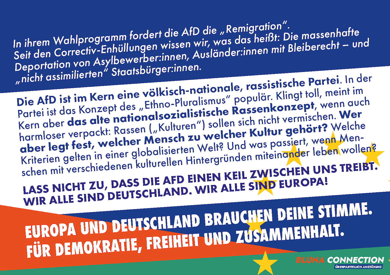 Natürlich hätten wir uns gewünscht, dass wir ein niedrigeres Wahlergebnis für die AfD erreicht hätten – aber es zählt am Ende der Widerstand und das Engagement und wir machen so oder so weiter. Die nächste Wahl steht 2025 vor der Tür!